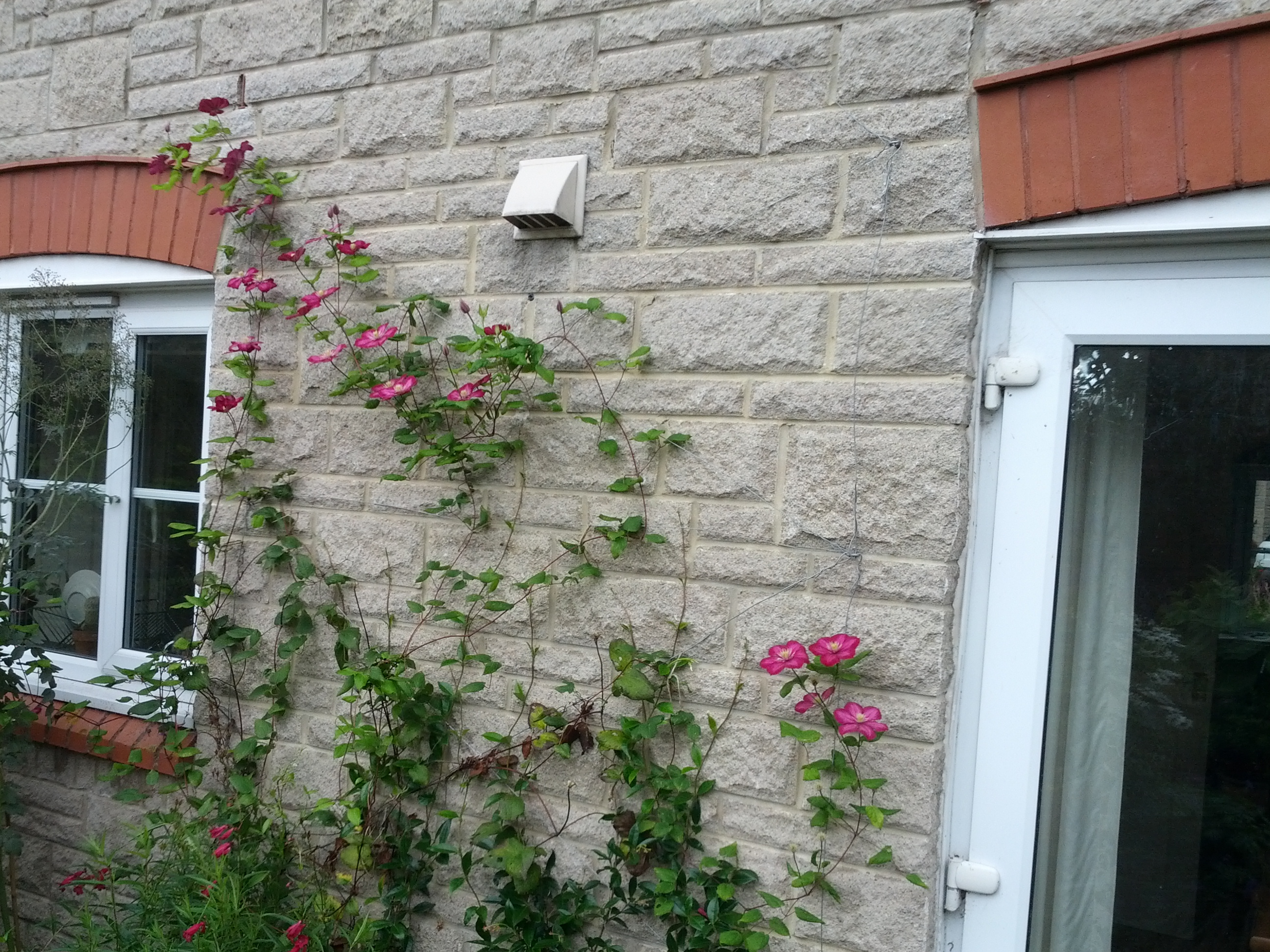 The clematis from the original garden, never very good, seems to have failed. The honeysuckle looked promising earlier in the year, but now looks tired. I would like at least one large flowered clematis and one good honeysuckle.