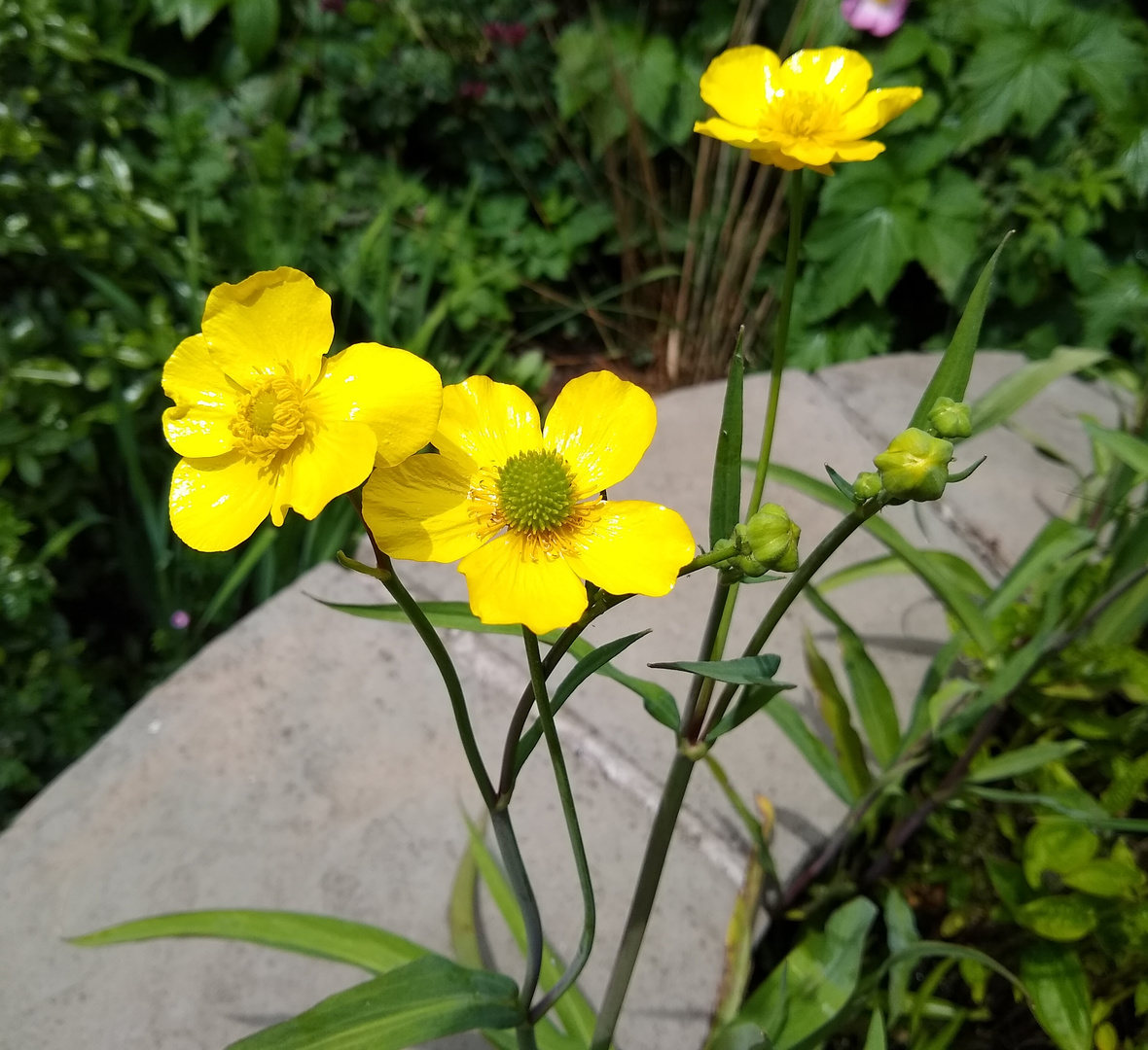 The greater spearwort has now migrated all over the pond from wherever I planted it, so I’ll need to pull some out.