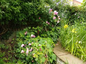This is flowering well, after being badly pruned last year. As soon as it’s finished flowering I’ll abandon the hips and cut it back to a better, bushier shape.