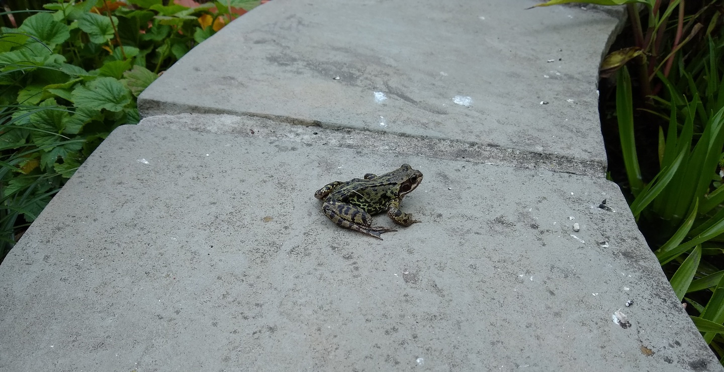 c. 9 am on wall next to pond. Too big to be one of this year’s?
