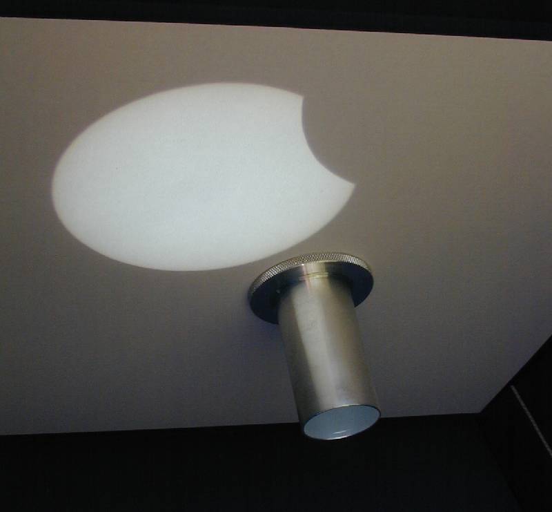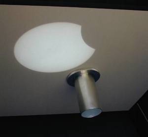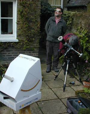 c. 09:50 | View through 70mm refractor with solar filter in front of objective. Two small sunspots can be seen at about 3 o'clock |