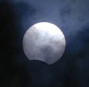 09:47 | The clouds clear to reveal the moon covering a small part of the sun | ![]() |