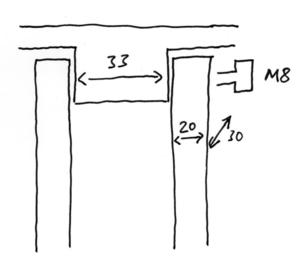Lower legs: 30 x 33 x 760 mm, 3 off.