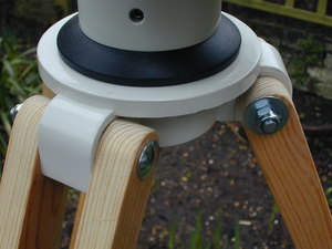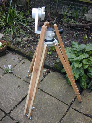 Replacing the aluminum legs with pine gives a much better damped tripod.