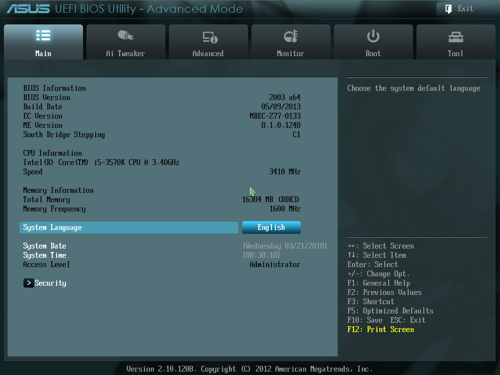 P8Z77-V BIOS, main tab